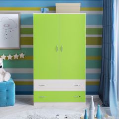Фурнитура: ручки металлические под золото с белыми вставками под эмаль, направляющие - шариковые полного выдвижения, ножки пластмассовые на металлической опоре, петли, амортизаторы ударов, штанга для одежды в комплекте