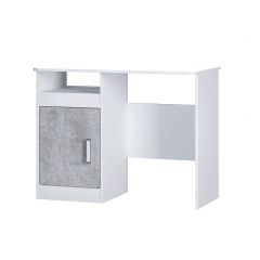 Письменный стол Паскаль – прекрасный выбор для организации рабочего места в кабинете или детской. • за счёт сочетания цветов белый и цемент светлый, он впишется в любой интерьер, • разместить все необходимые документы, вещи или канцелярские принадлежности можно в открытой нише или закрытых полках, находящихся под столешницей. Высокое качество по доступной цене – это письменный стол Паскаль.