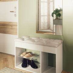 В зеркало с широким фацетом, встроена подсветка c 6 лампочками (приобретаются отдельно), как в столах профессиональных визажистов. Дополнительно имеется выключатель, розетка для фена и выдвижной ящик для украшений и косметики.